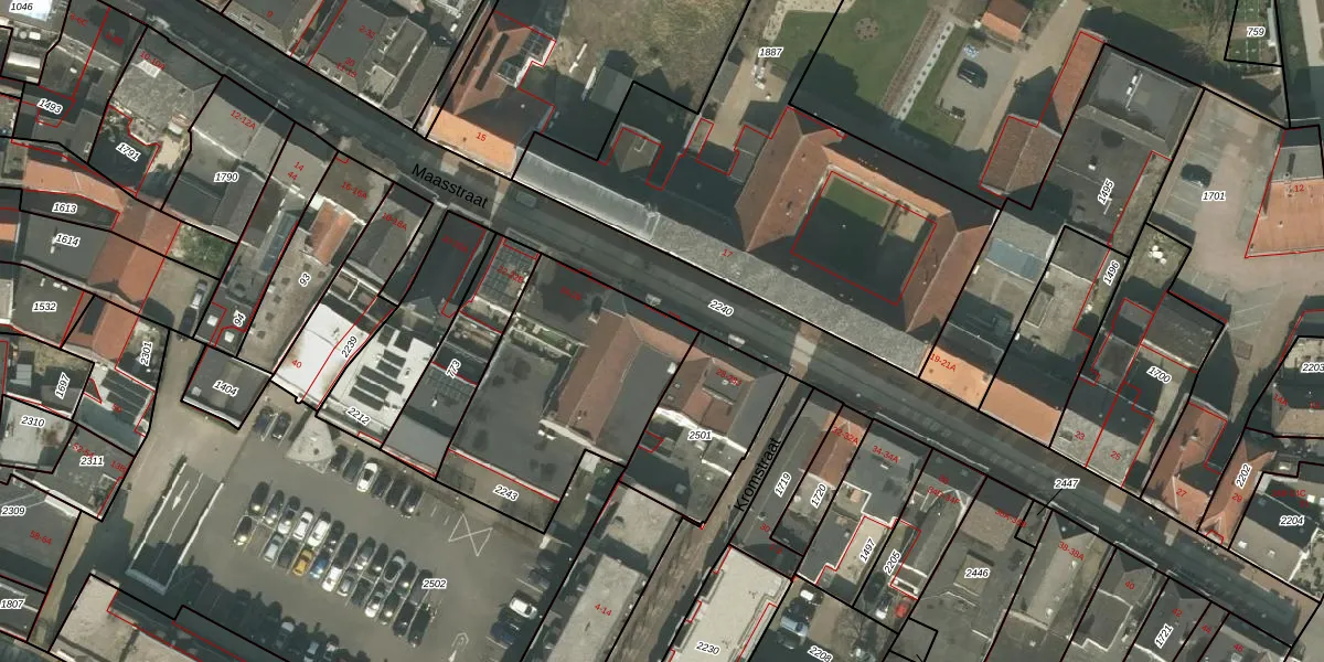 Maasstraat 26 is gelegen op kadastraal perceel WEE01O2243. Deze kadastrale aanduiding is uniek en wordt gebruikt door het Kadaster om eigendomsrechten en andere zakelijke rechten vast te leggen. Het perceel maakt onderdeel uit van de kadastrale gemeente Weert.