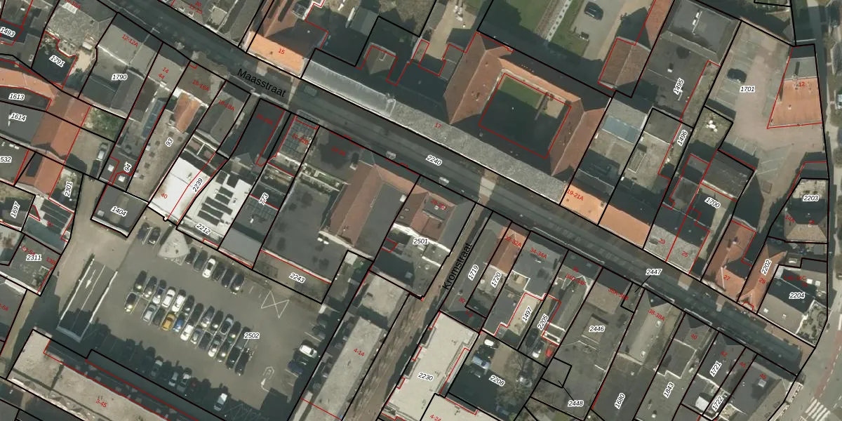 Maasstraat 28-F is gelegen op kadastraal perceel WEE01O2501. Deze kadastrale aanduiding is uniek en wordt gebruikt door het Kadaster om eigendomsrechten en andere zakelijke rechten vast te leggen. Het perceel maakt onderdeel uit van de kadastrale gemeente Weert.