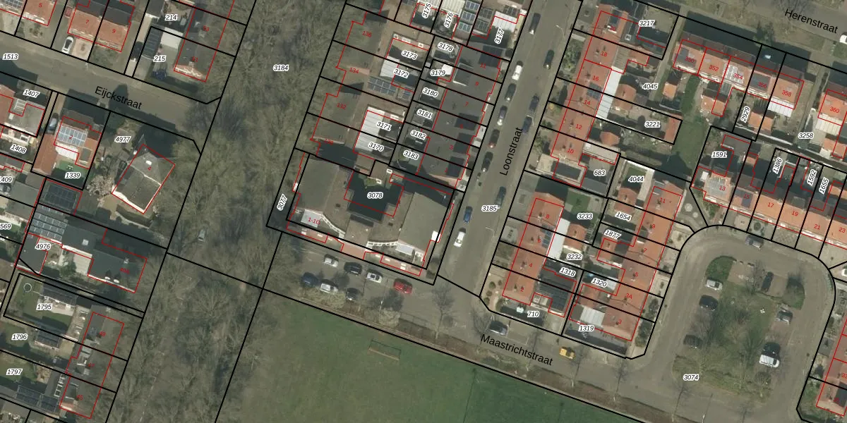 Het perceel waarop Maastrichtstraat 1-E staat heeft een oppervlakte van 649 m². Dit is een groot perceel. De perceeloppervlakte wordt geregistreerd door het Kadaster. Gedetailleerde informatie over de maten van dit perceel kunt u vinden in het rapport Kadastrale kaart met maatvoering van Maastrichtstraat 1-E.