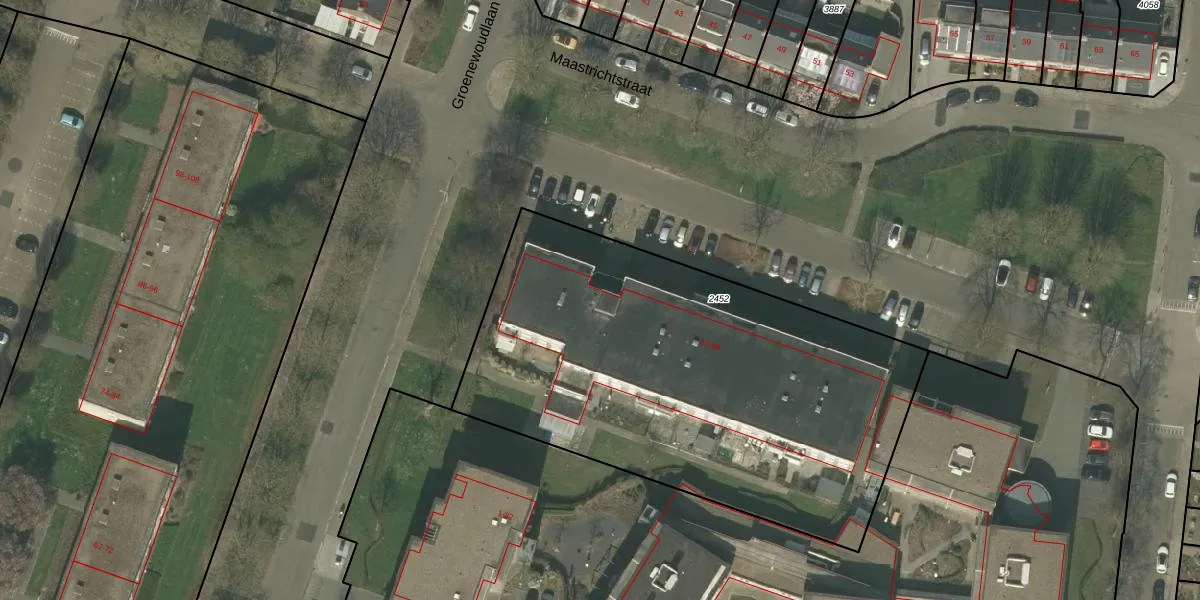 Het perceel waarop Maastrichtstraat 56 staat heeft een oppervlakte van 2570 m². Dit is een zeer groot perceel. De perceeloppervlakte wordt geregistreerd door het Kadaster. Gedetailleerde informatie over de maten van dit perceel kunt u vinden in het rapport Kadastrale kaart met maatvoering van Maastrichtstraat 56.