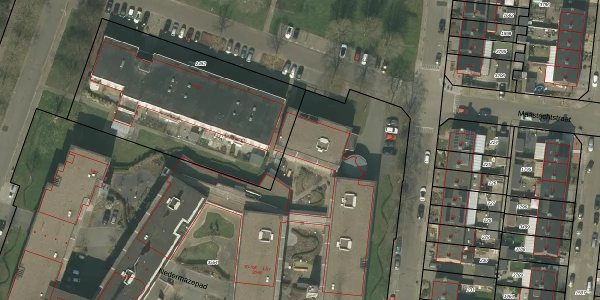 Het perceel waarop Maastrichtstraat 70-A staat heeft een oppervlakte van 1,2 ha. Dit is een zeer groot perceel. De perceeloppervlakte wordt geregistreerd door het Kadaster. Gedetailleerde informatie over de maten van dit perceel kunt u vinden in het rapport Kadastrale kaart met maatvoering van Maastrichtstraat 70-A.