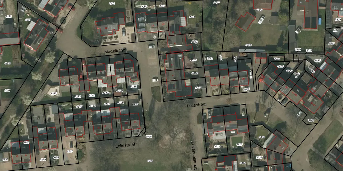 Het perceel waarop Madeliefhof 2 staat heeft een oppervlakte van 295 m². Dit is een middelgroot perceel. De perceeloppervlakte wordt geregistreerd door het Kadaster. Gedetailleerde informatie over de maten van dit perceel kunt u vinden in het rapport Kadastrale kaart met maatvoering van Madeliefhof 2.