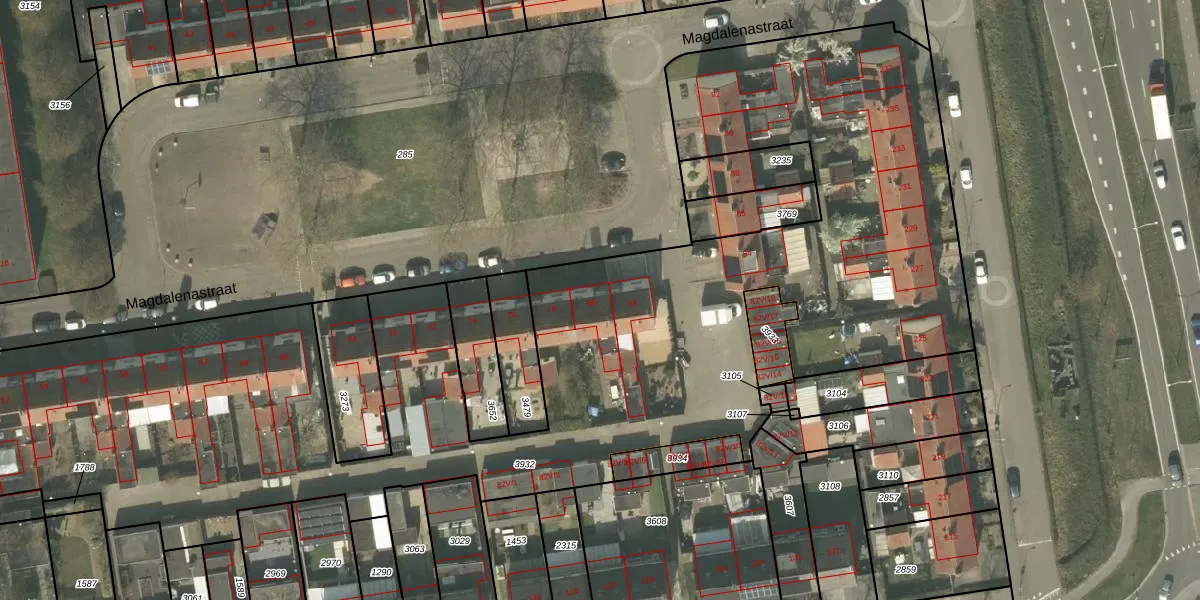 Het perceel waarop Magdalenastraat 80 staat heeft een oppervlakte van 5593 m². Dit is een zeer groot perceel. De perceeloppervlakte wordt geregistreerd door het Kadaster. Gedetailleerde informatie over de maten van dit perceel kunt u vinden in het rapport Kadastrale kaart met maatvoering van Magdalenastraat 80.