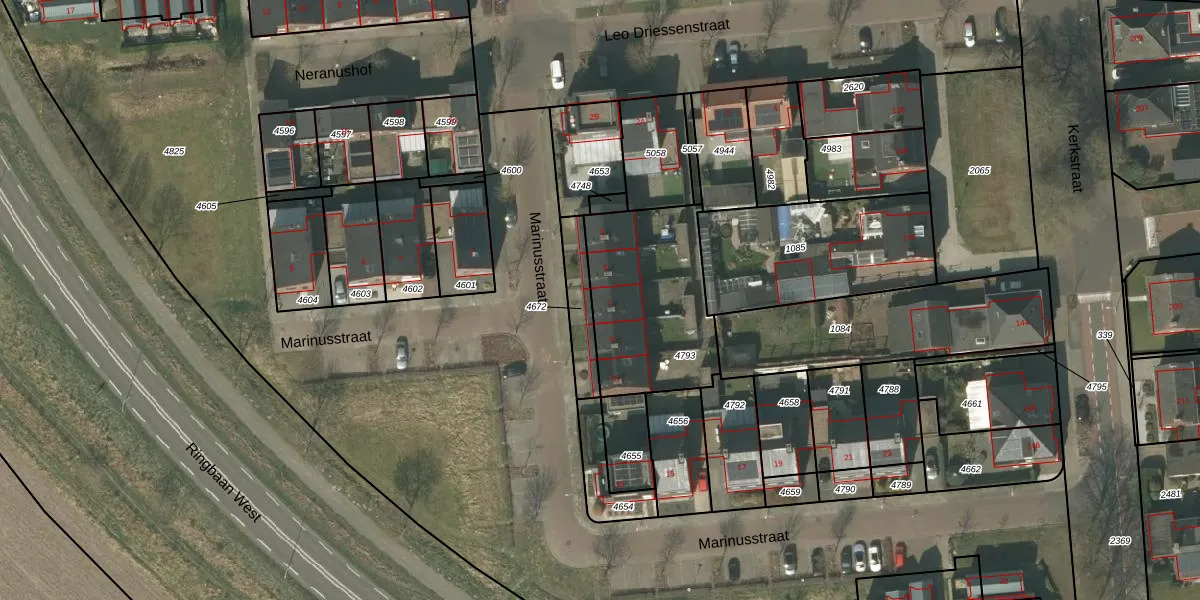 Het perceel waarop Marinusstraat 7 staat heeft een oppervlakte van 588 m². Dit is een groot perceel. De perceeloppervlakte wordt geregistreerd door het Kadaster. Gedetailleerde informatie over de maten van dit perceel kunt u vinden in het rapport Kadastrale kaart met maatvoering van Marinusstraat 7.