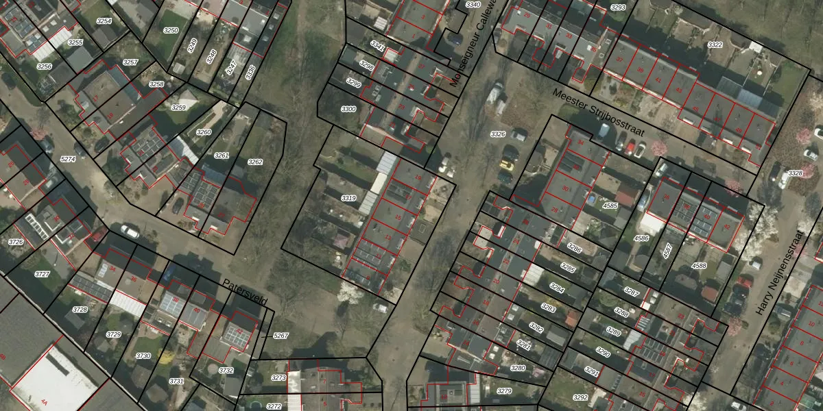Het perceel waarop Meester Strijbosstraat 17 staat heeft een oppervlakte van 1045 m². Dit is een zeer groot perceel. De perceeloppervlakte wordt geregistreerd door het Kadaster. Gedetailleerde informatie over de maten van dit perceel kunt u vinden in het rapport Kadastrale kaart met maatvoering van Meester Strijbosstraat 17.