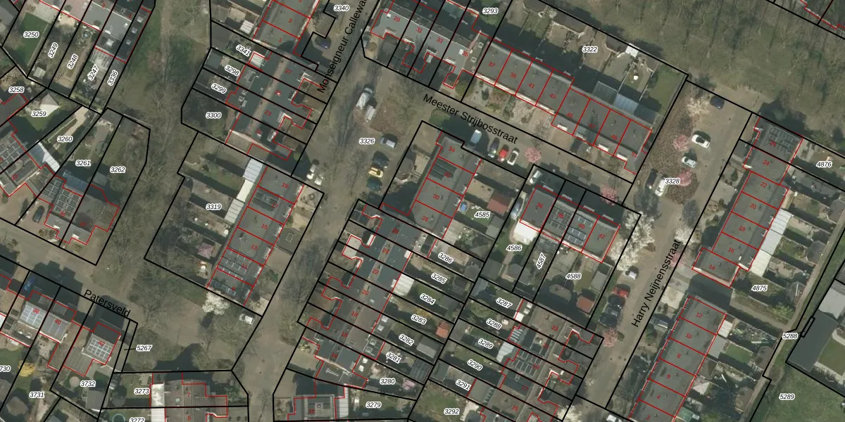 Het perceel waarop Meester Strijbosstraat 28 staat heeft een oppervlakte van 632 m². Dit is een groot perceel. De perceeloppervlakte wordt geregistreerd door het Kadaster. Gedetailleerde informatie over de maten van dit perceel kunt u vinden in het rapport Kadastrale kaart met maatvoering van Meester Strijbosstraat 28.