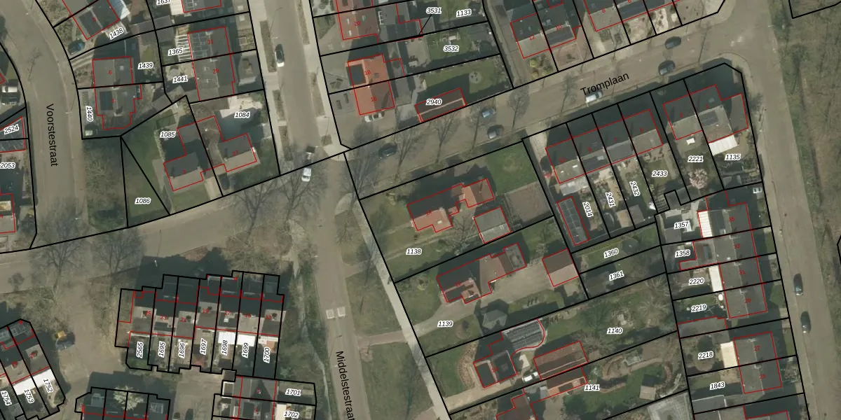 Gebruik de zoekbalk of klik op een perceel voor informatie over de adressen binnen dit perceel.