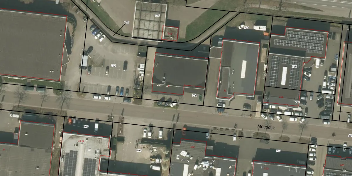 Het perceel waarop Moesdijk 9 staat heeft een oppervlakte van 1120 m². Dit is een zeer groot perceel. De perceeloppervlakte wordt geregistreerd door het Kadaster. Gedetailleerde informatie over de maten van dit perceel kunt u vinden in het rapport Kadastrale kaart met maatvoering van Moesdijk 9.