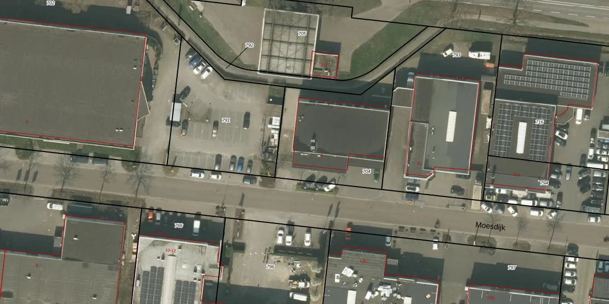 Het perceel waarop Moesdijk 9-A staat heeft een oppervlakte van 1120 m². Dit is een zeer groot perceel. De perceeloppervlakte wordt geregistreerd door het Kadaster. Gedetailleerde informatie over de maten van dit perceel kunt u vinden in het rapport Kadastrale kaart met maatvoering van Moesdijk 9-A.