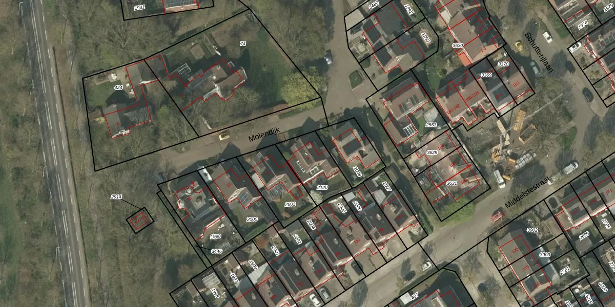Het perceel waarop Molendijk 9 staat heeft een oppervlakte van 300 m². Dit is een groot perceel. De perceeloppervlakte wordt geregistreerd door het Kadaster. Gedetailleerde informatie over de maten van dit perceel kunt u vinden in het rapport Kadastrale kaart met maatvoering van Molendijk 9.