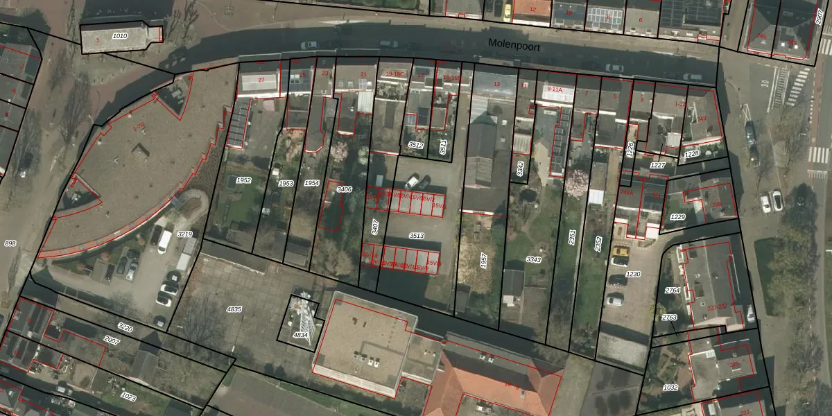 Het perceel waarop Molenpoort 15-V-3 staat heeft een oppervlakte van 755 m². Dit is een groot perceel. De perceeloppervlakte wordt geregistreerd door het Kadaster. Gedetailleerde informatie over de maten van dit perceel kunt u vinden in het rapport Kadastrale kaart met maatvoering van Molenpoort 15-V-3.