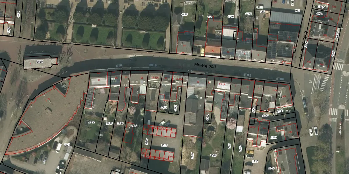 Het perceel waarop Molenpoort 15-B staat heeft een oppervlakte van 140 m². Dit is een middelgroot perceel. De perceeloppervlakte wordt geregistreerd door het Kadaster. Gedetailleerde informatie over de maten van dit perceel kunt u vinden in het rapport Kadastrale kaart met maatvoering van Molenpoort 15-B.