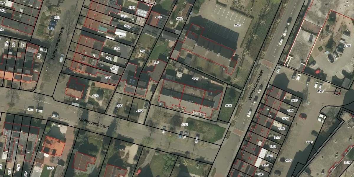 Het perceel waarop Molenveldstraat 4-B staat heeft een oppervlakte van 945 m². Dit is een groot perceel. De perceeloppervlakte wordt geregistreerd door het Kadaster. Gedetailleerde informatie over de maten van dit perceel kunt u vinden in het rapport Kadastrale kaart met maatvoering van Molenveldstraat 4-B.