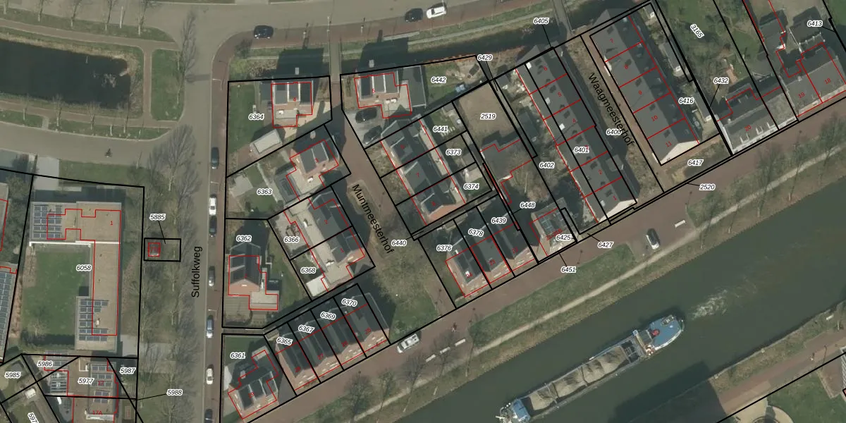 Gebruik de zoekbalk of klik op een perceel voor informatie over de adressen binnen dit perceel.