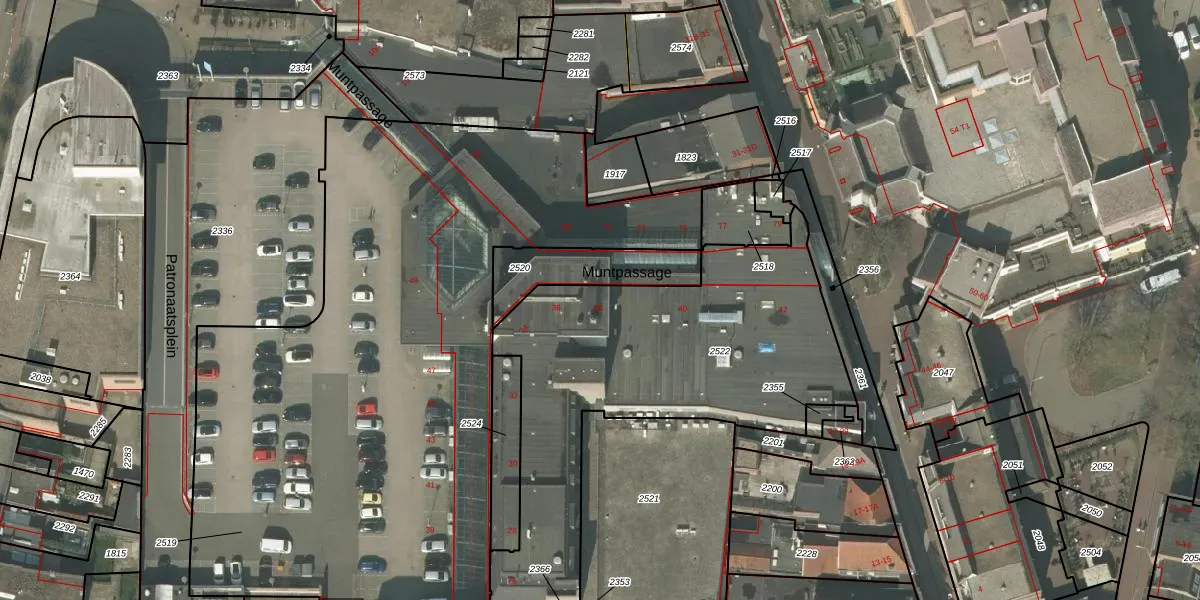 Het perceel waarop Muntpassage 38 staat heeft een oppervlakte van 1738 m². Dit is een zeer groot perceel. De perceeloppervlakte wordt geregistreerd door het Kadaster. Gedetailleerde informatie over de maten van dit perceel kunt u vinden in het rapport Kadastrale kaart met maatvoering van Muntpassage 38.