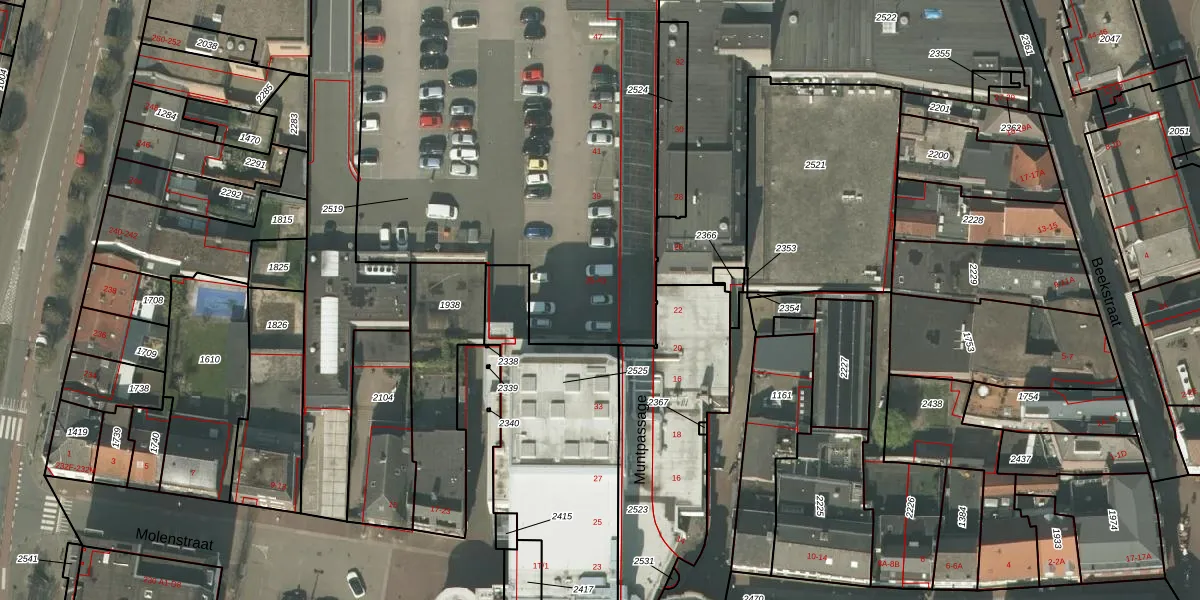 Muntpassage 39 is gelegen op kadastraal perceel WEE01O2519. Deze kadastrale aanduiding is uniek en wordt gebruikt door het Kadaster om eigendomsrechten en andere zakelijke rechten vast te leggen. Het perceel maakt onderdeel uit van de kadastrale gemeente Weert.