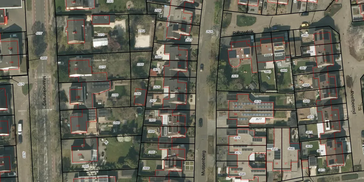 Het perceel waarop Mussenberg 30 staat heeft een oppervlakte van 235 m². Dit is een middelgroot perceel. De perceeloppervlakte wordt geregistreerd door het Kadaster. Gedetailleerde informatie over de maten van dit perceel kunt u vinden in het rapport Kadastrale kaart met maatvoering van Mussenberg 30.