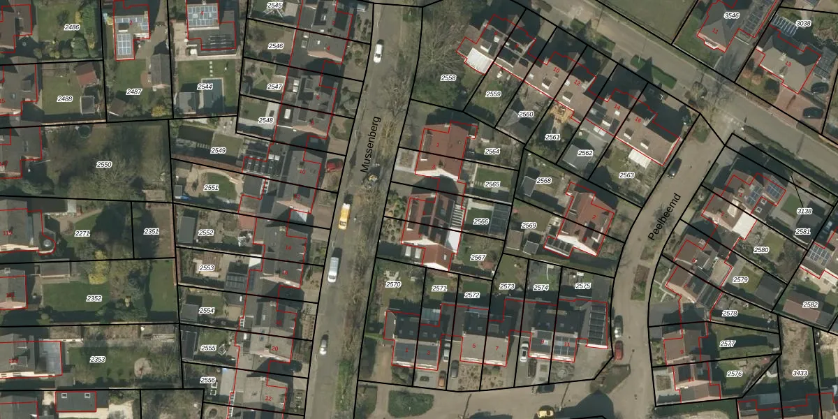 Gebruik de zoekbalk of klik op een perceel voor informatie over de adressen binnen dit perceel.