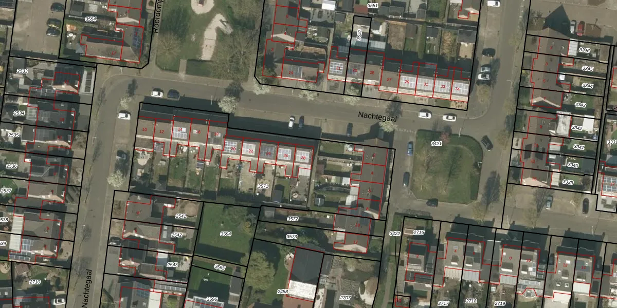 Het perceel waarop Nachtegaal 28 staat heeft een oppervlakte van 2153 m². Dit is een zeer groot perceel. De perceeloppervlakte wordt geregistreerd door het Kadaster. Gedetailleerde informatie over de maten van dit perceel kunt u vinden in het rapport Kadastrale kaart met maatvoering van Nachtegaal 28.