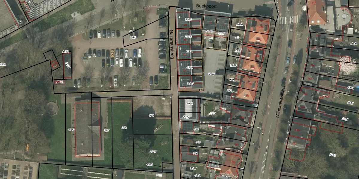 Nazarethsteeg 12 is gelegen op kadastraal perceel WEE01R5366. Deze kadastrale aanduiding is uniek en wordt gebruikt door het Kadaster om eigendomsrechten en andere zakelijke rechten vast te leggen. Het perceel maakt onderdeel uit van de kadastrale gemeente Weert.