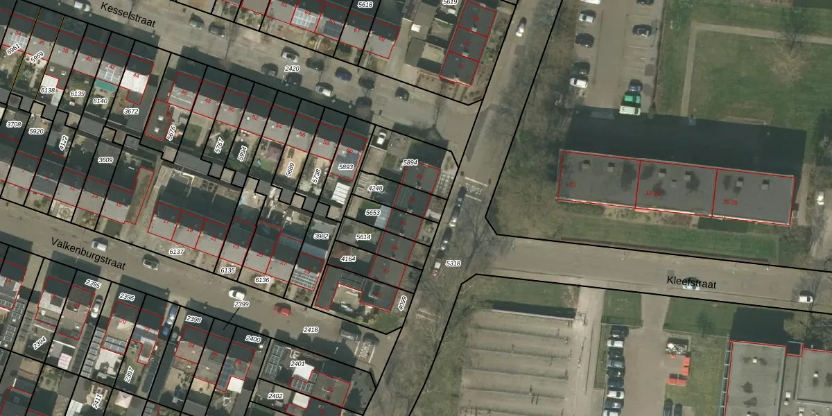 Gebruik de zoekbalk of klik op een perceel voor informatie over de adressen binnen dit perceel.