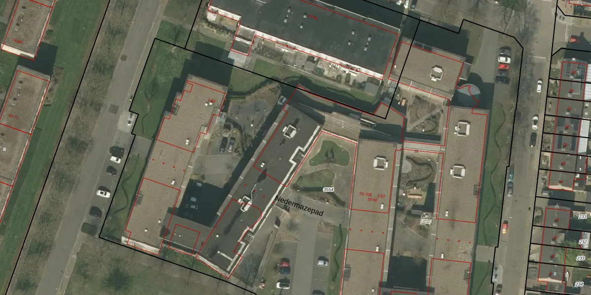 Nedermazepad 62 is gelegen op kadastraal perceel WEE01T3554. Deze kadastrale aanduiding is uniek en wordt gebruikt door het Kadaster om eigendomsrechten en andere zakelijke rechten vast te leggen. Het perceel maakt onderdeel uit van de kadastrale gemeente Weert.