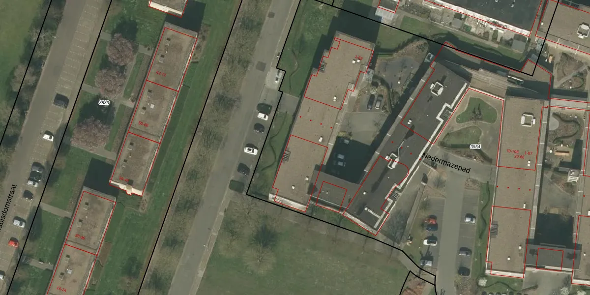 Nedermazepad 72 is gelegen op kadastraal perceel WEE01T3554. Deze kadastrale aanduiding is uniek en wordt gebruikt door het Kadaster om eigendomsrechten en andere zakelijke rechten vast te leggen. Het perceel maakt onderdeel uit van de kadastrale gemeente Weert.