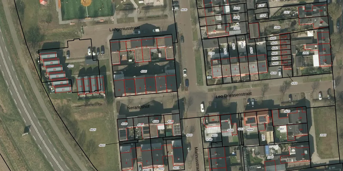 Het perceel waarop het adres ligt is WEE01-R-4595. De afkorting 'WEE01' staat voor kadastrale gemeente Weert. Het perceel is kleiner dan gemiddeld in Weert. Het perceel is 1224 m² groot, terwijl het gemiddelde ligt op 3764,43 m². De grootste perceeloppervlakte in de kadastrale gemeente is 3,08 km². De kleinste oppervlakte bedraagt 0 m². Op het perceel liggen in totaal 10 adressen. In de Basisregistratie Kadaster (BRK) werden de grenzen van het perceel geregistreerd op 16-12-2009.