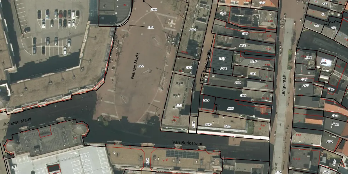 Het perceel waarop Nieuwe Markt 2-C staat heeft een oppervlakte van 480 m². Dit is een groot perceel. De perceeloppervlakte wordt geregistreerd door het Kadaster. Gedetailleerde informatie over de maten van dit perceel kunt u vinden in het rapport Kadastrale kaart met maatvoering van Nieuwe Markt 2-C.