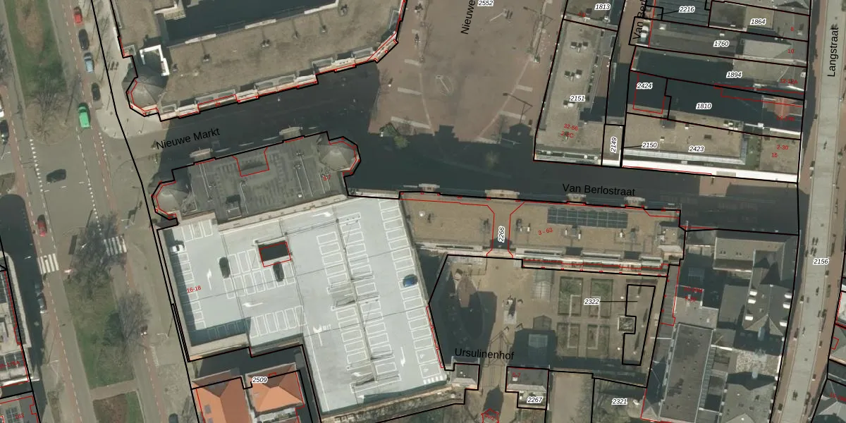 Het perceel waarop Nieuwe Markt 7 staat heeft een oppervlakte van 4410 m². Dit is een zeer groot perceel. De perceeloppervlakte wordt geregistreerd door het Kadaster. Gedetailleerde informatie over de maten van dit perceel kunt u vinden in het rapport Kadastrale kaart met maatvoering van Nieuwe Markt 7.