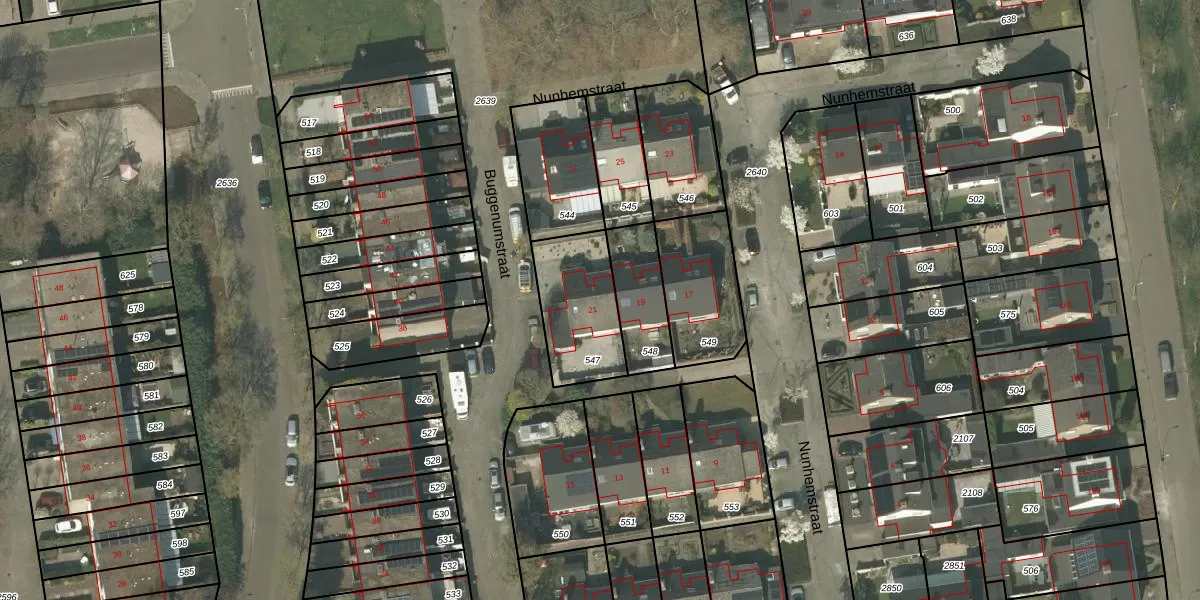 Het perceel waarop Nunhemstraat 21 staat heeft een oppervlakte van 313 m². Dit is een groot perceel. De perceeloppervlakte wordt geregistreerd door het Kadaster. Gedetailleerde informatie over de maten van dit perceel kunt u vinden in het rapport Kadastrale kaart met maatvoering van Nunhemstraat 21.