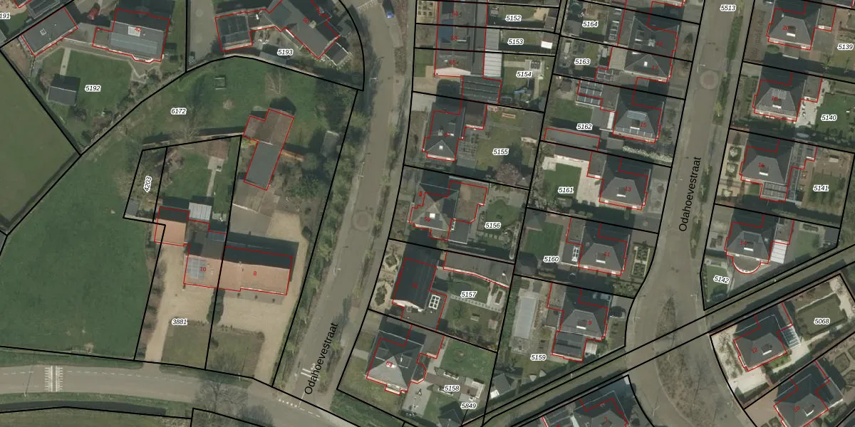Het perceel waarop Odahoevestraat 59 staat heeft een oppervlakte van 532 m². Dit is een groot perceel. De perceeloppervlakte wordt geregistreerd door het Kadaster. Gedetailleerde informatie over de maten van dit perceel kunt u vinden in het rapport Kadastrale kaart met maatvoering van Odahoevestraat 59.