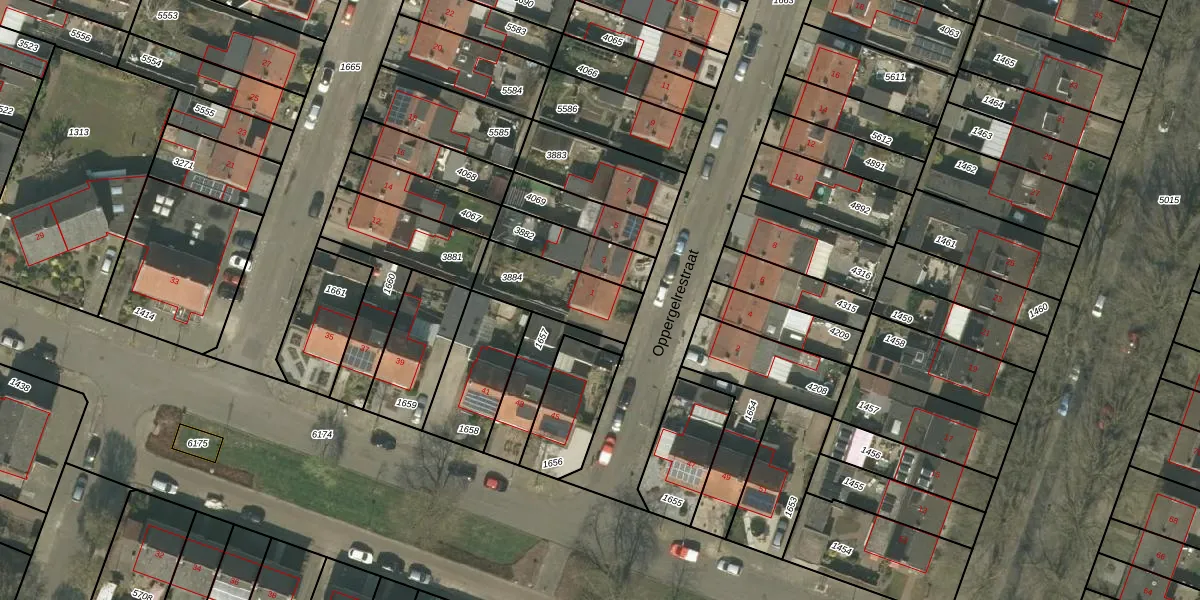 Het perceel waarop Oppergelrestraat 1 staat heeft een oppervlakte van 245 m². Dit is een middelgroot perceel. De perceeloppervlakte wordt geregistreerd door het Kadaster. Gedetailleerde informatie over de maten van dit perceel kunt u vinden in het rapport Kadastrale kaart met maatvoering van Oppergelrestraat 1.