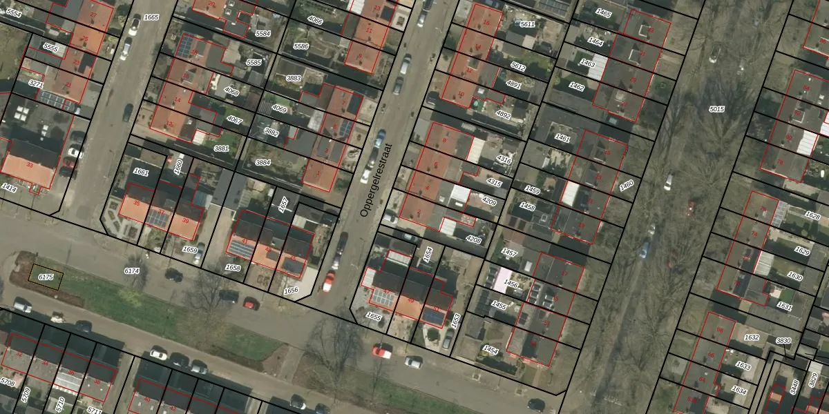 Gebruik de zoekbalk of klik op een perceel voor informatie over de adressen binnen dit perceel.