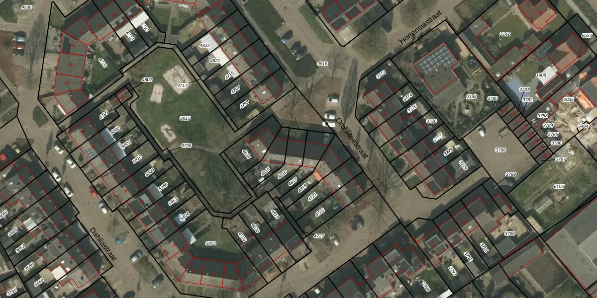 Orchideestraat 9 is gelegen op kadastraal perceel WEE01N4816. Deze kadastrale aanduiding is uniek en wordt gebruikt door het Kadaster om eigendomsrechten en andere zakelijke rechten vast te leggen. Het perceel maakt onderdeel uit van de kadastrale gemeente Weert.