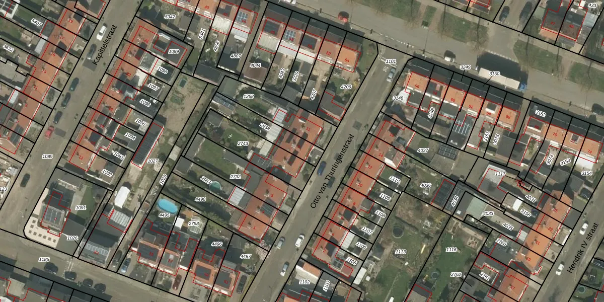 Otto van Thuringenstraat 9 is gelegen op kadastraal perceel WEE01S2958. Deze kadastrale aanduiding is uniek en wordt gebruikt door het Kadaster om eigendomsrechten en andere zakelijke rechten vast te leggen. Het perceel maakt onderdeel uit van de kadastrale gemeente Weert.