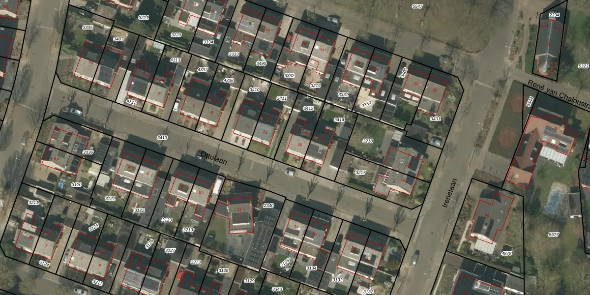 Gebruik de zoekbalk of klik op een perceel voor informatie over de adressen binnen dit perceel.