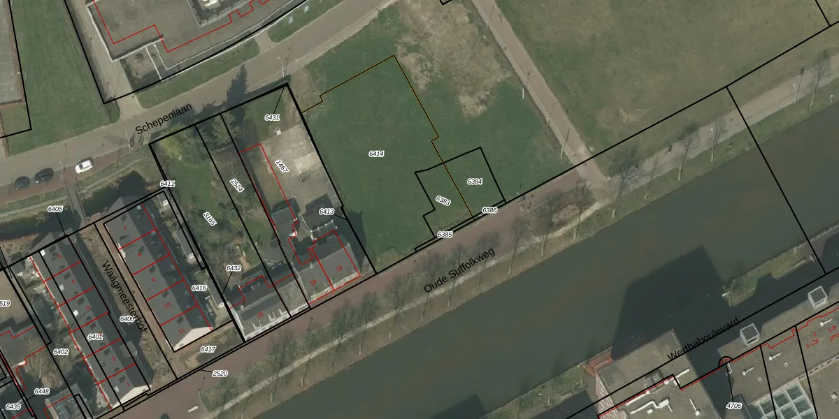 Oude Suffolkweg 16 is gelegen op kadastraal perceel WEE01N6414. Deze kadastrale aanduiding is uniek en wordt gebruikt door het Kadaster om eigendomsrechten en andere zakelijke rechten vast te leggen. Het perceel maakt onderdeel uit van de kadastrale gemeente Weert.