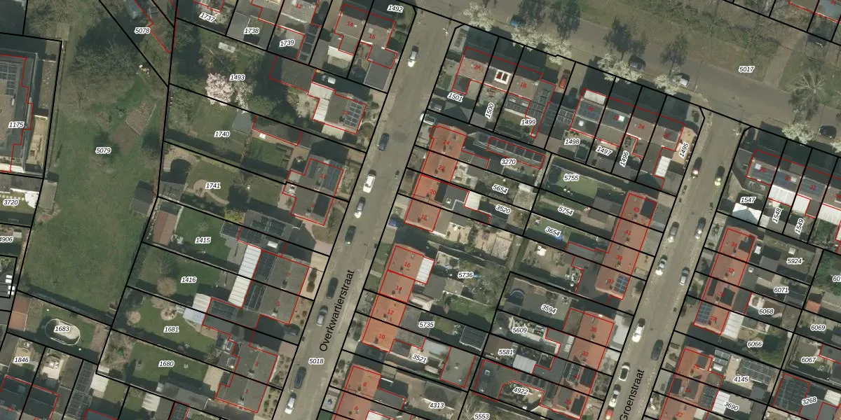 Het perceel waarop Overkwartierstraat 18 staat heeft een oppervlakte van 1055 m². Dit is een zeer groot perceel. De perceeloppervlakte wordt geregistreerd door het Kadaster. Gedetailleerde informatie over de maten van dit perceel kunt u vinden in het rapport Kadastrale kaart met maatvoering van Overkwartierstraat 18.