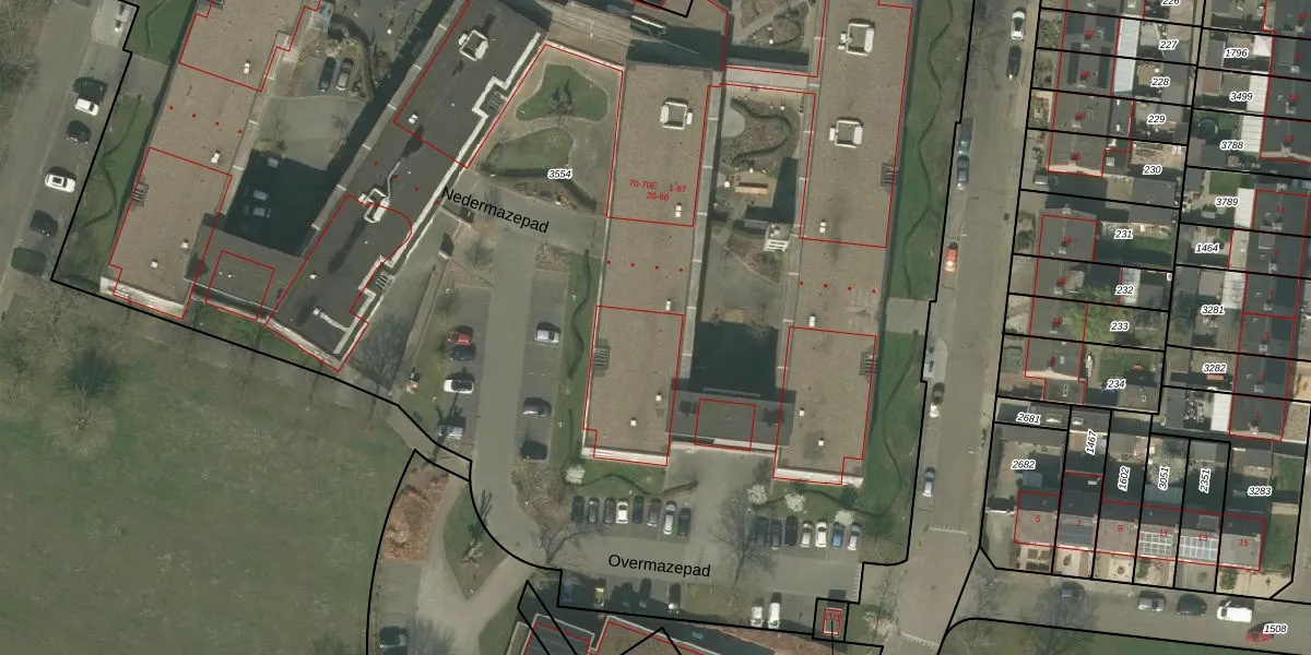Overmazepad 9 is gelegen op kadastraal perceel WEE01T3554. Deze kadastrale aanduiding is uniek en wordt gebruikt door het Kadaster om eigendomsrechten en andere zakelijke rechten vast te leggen. Het perceel maakt onderdeel uit van de kadastrale gemeente Weert.