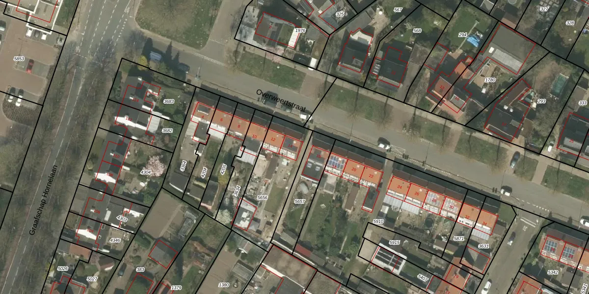 Overweertstraat 14 is gelegen op kadastraal perceel WEE01S5656. Deze kadastrale aanduiding is uniek en wordt gebruikt door het Kadaster om eigendomsrechten en andere zakelijke rechten vast te leggen. Het perceel maakt onderdeel uit van de kadastrale gemeente Weert.
