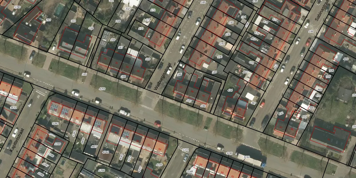 Gebruik de zoekbalk of klik op een perceel voor informatie over de adressen binnen dit perceel.