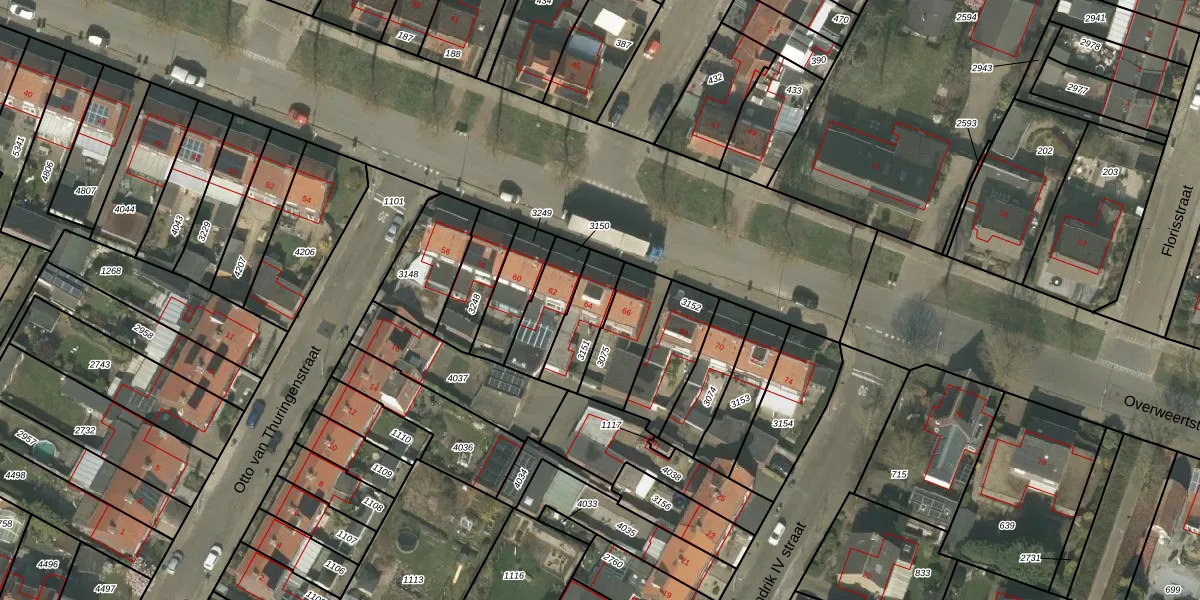 Het perceel waarop Overweertstraat 64 staat heeft een oppervlakte van 150 m². Dit is een middelgroot perceel. De perceeloppervlakte wordt geregistreerd door het Kadaster. Gedetailleerde informatie over de maten van dit perceel kunt u vinden in het rapport Kadastrale kaart met maatvoering van Overweertstraat 64.