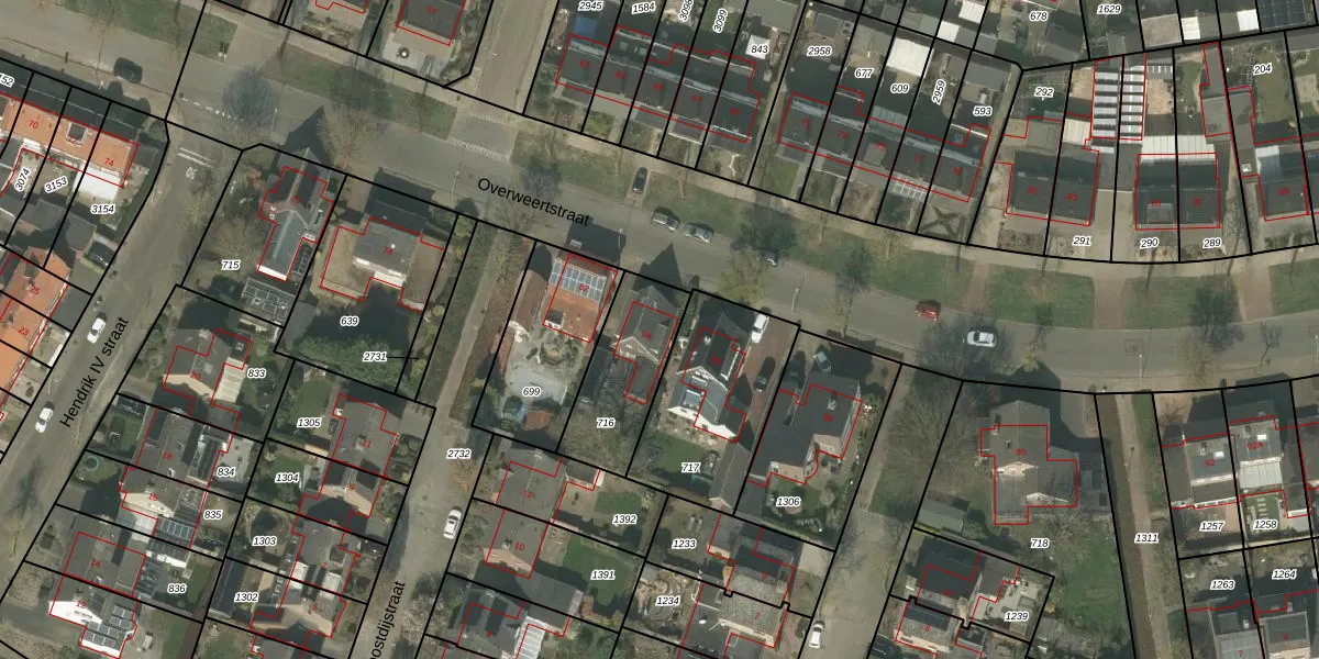 Het perceel waarop Overweertstraat 84 staat heeft een oppervlakte van 332 m². Dit is een groot perceel. De perceeloppervlakte wordt geregistreerd door het Kadaster. Gedetailleerde informatie over de maten van dit perceel kunt u vinden in het rapport Kadastrale kaart met maatvoering van Overweertstraat 84.