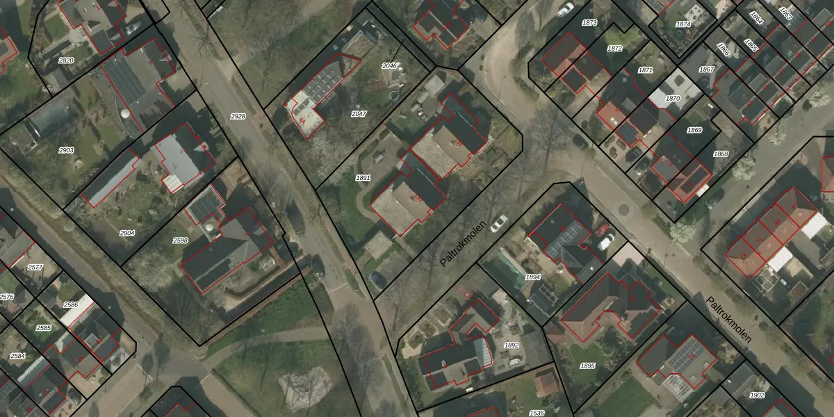Het perceel waarop Paltrokmolen 130 staat heeft een oppervlakte van 1390 m². Dit is een zeer groot perceel. De perceeloppervlakte wordt geregistreerd door het Kadaster. Gedetailleerde informatie over de maten van dit perceel kunt u vinden in het rapport Kadastrale kaart met maatvoering van Paltrokmolen 130.