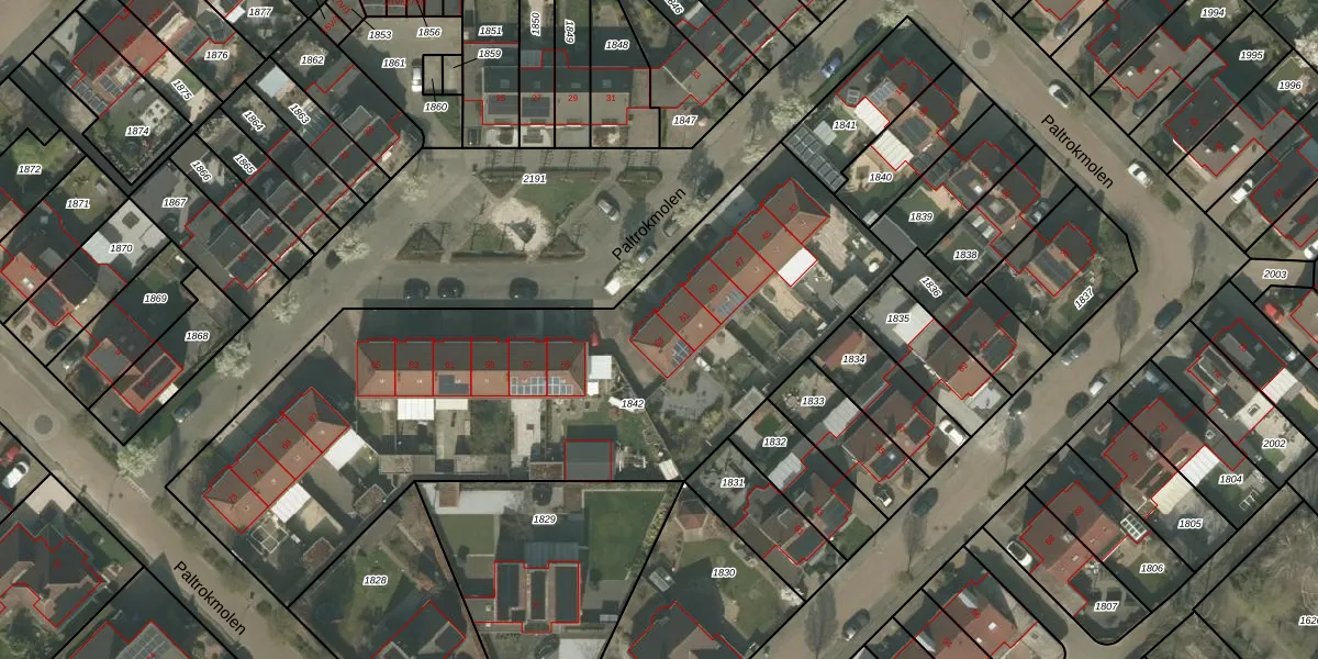 Het perceel waarop Paltrokmolen 53 staat heeft een oppervlakte van 2991 m². Dit is een zeer groot perceel. De perceeloppervlakte wordt geregistreerd door het Kadaster. Gedetailleerde informatie over de maten van dit perceel kunt u vinden in het rapport Kadastrale kaart met maatvoering van Paltrokmolen 53.