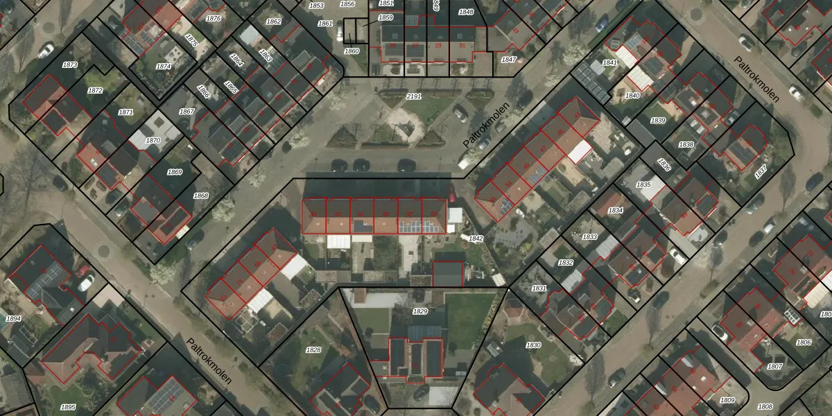 Het perceel waarop Paltrokmolen 57 staat heeft een oppervlakte van 2991 m². Dit is een zeer groot perceel. De perceeloppervlakte wordt geregistreerd door het Kadaster. Gedetailleerde informatie over de maten van dit perceel kunt u vinden in het rapport Kadastrale kaart met maatvoering van Paltrokmolen 57.