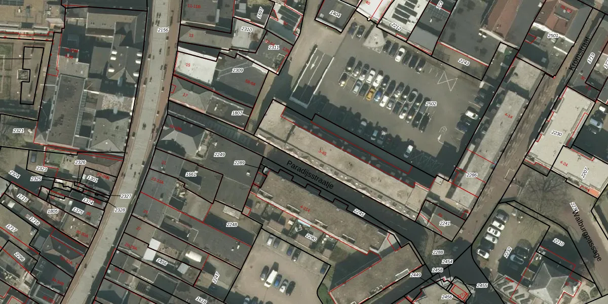 Paradijsstraatje 5 is gelegen op kadastraal perceel WEE01O2286. Deze kadastrale aanduiding is uniek en wordt gebruikt door het Kadaster om eigendomsrechten en andere zakelijke rechten vast te leggen. Het perceel maakt onderdeel uit van de kadastrale gemeente Weert.
