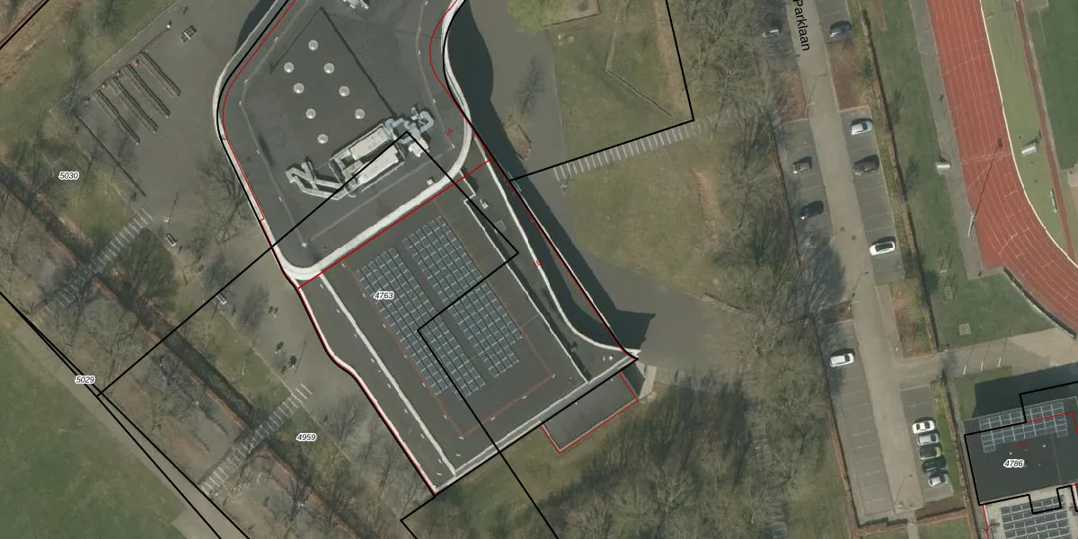 Het perceel waarop Parklaan 1-B staat heeft een oppervlakte van 3980 m². Dit is een zeer groot perceel. De perceeloppervlakte wordt geregistreerd door het Kadaster. Gedetailleerde informatie over de maten van dit perceel kunt u vinden in het rapport Kadastrale kaart met maatvoering van Parklaan 1-B.