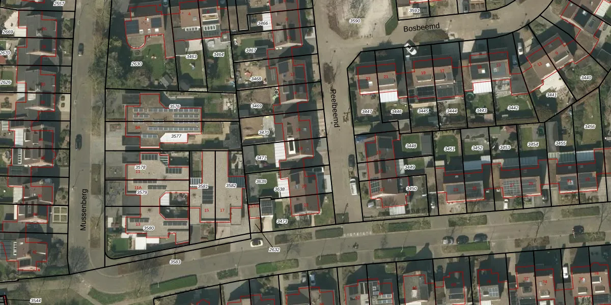 Gebruik de zoekbalk of klik op een perceel voor informatie over de adressen binnen dit perceel.